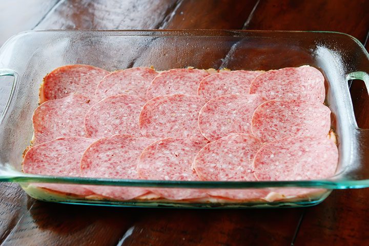 An easy, cheesy, Italian Breakfast Casserole. Layer crescent rolls, ham, salami, eggs, bell peppers and cheese, then bake for 30 mins. Perfect for breakfast, lunch, or breakfast for dinner!