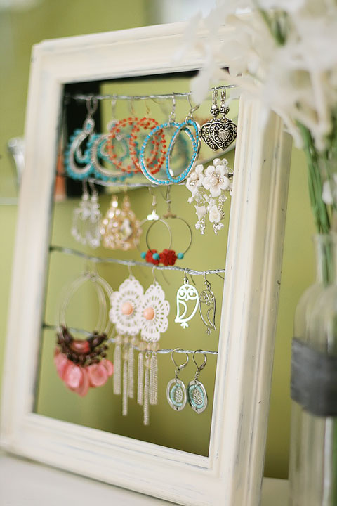 Such a lovely & simple idea! For my own earrings, I use a strand of chain to hang my earrings from, it’d be fun to try them on a picture frame! That way the earrings can be hooked in the links.